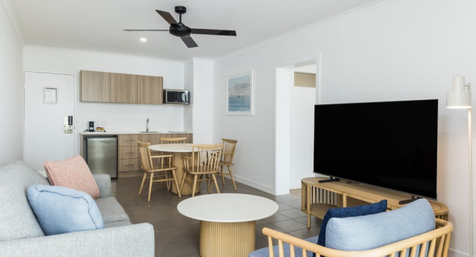 我们的一卧池景套房是享受热带度假的完美选择。 在特大床上酣睡一晚,醒来后精神焕发,在俯瞰泳池的私人阳台上享用一杯茶或咖啡。 这里有您舒适入住所需的所有设施,包括小厨房、宽敞的起居和用餐区以及Wi-Fi。